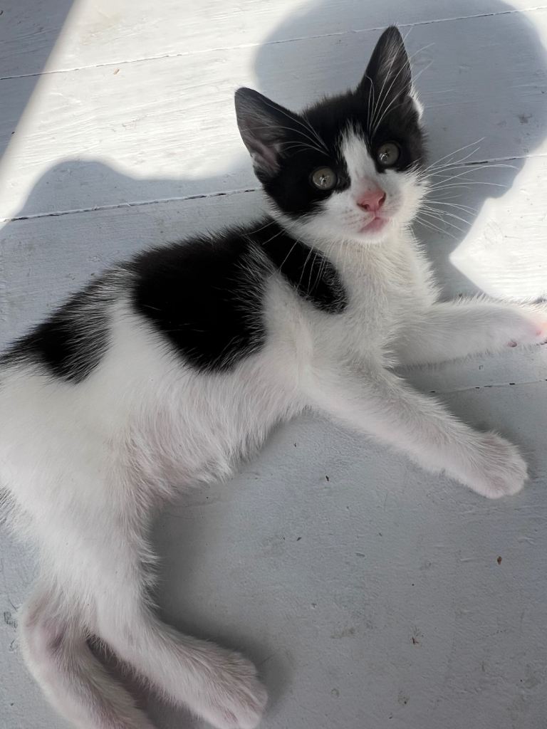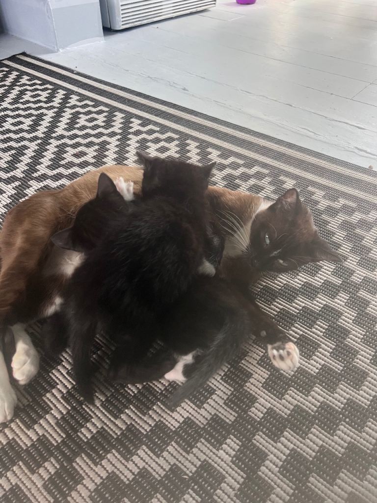 Three adorable kittens 9 weeks old ready forever home’s . Female more white with black markings . One female all black/ male black and white Wormed and had flea treatment /litter trained using odour lock / eat both wet & dry food. Not scared of loud noises and very playful and love a tummy rub . Comfortable around children and lots of people