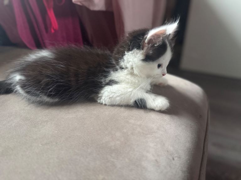 I have a beautiful Maine Coon cross Domestic Short Hair male kitten for sale. He was born on 1st January 2026 and is now ready to find his forever home.