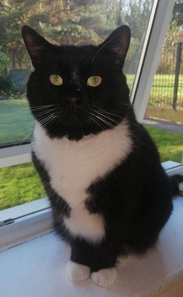Beautiful Tuxedo male for sale. He is about 7 years old, we took him in as a stray. He is chipped and neutered. He can be a bit timid at first but soon comes out if his shell.