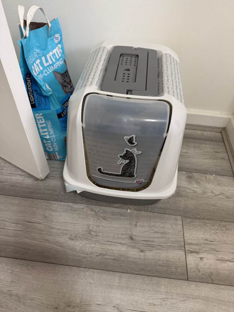 Covered cat litter box