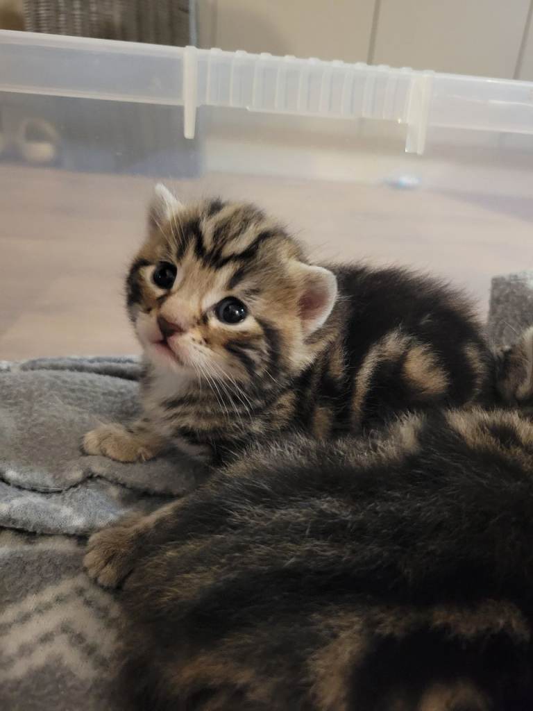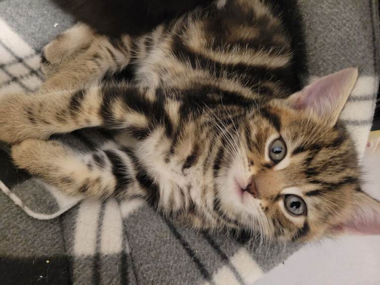 Litter trained and feeding well. Brought up in a house with young children and handled daily. They are both playful and cuddly. They love a little snuggle on the sofa at any given opportunity!
