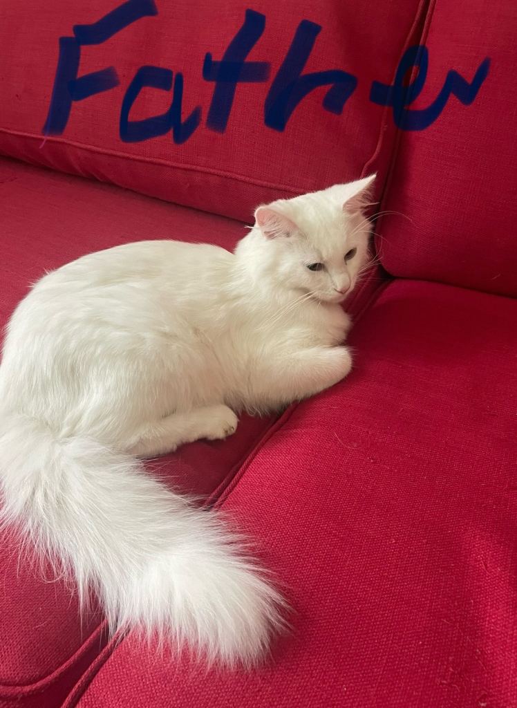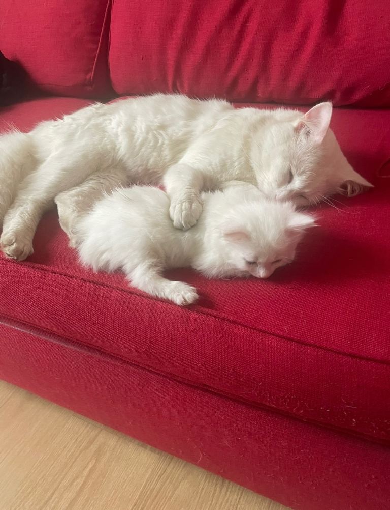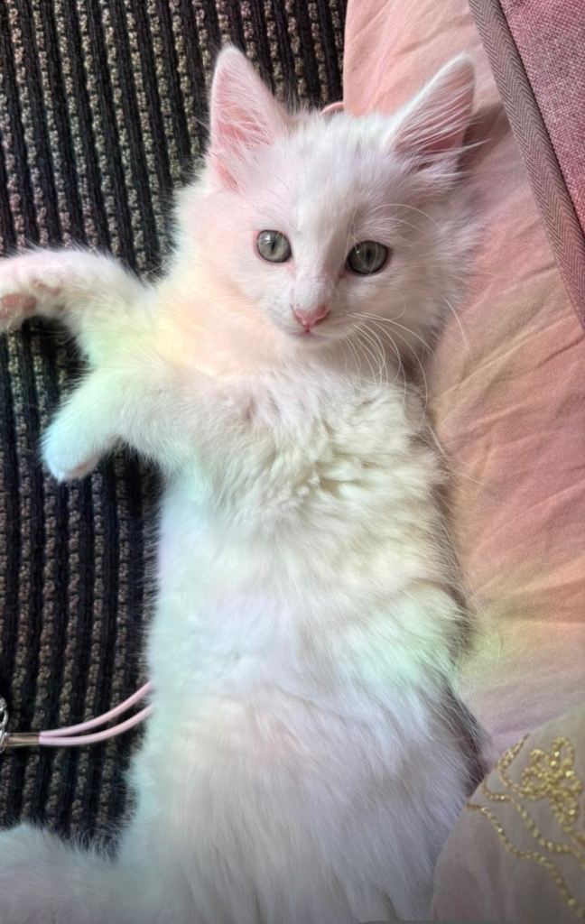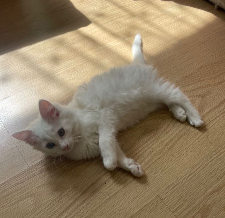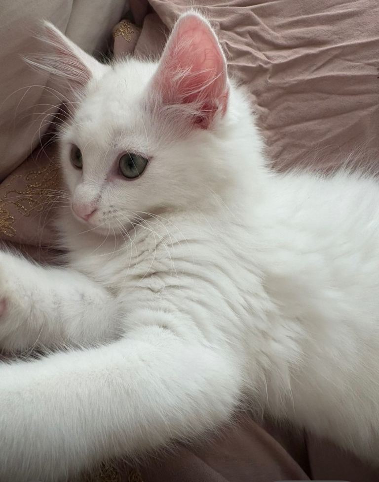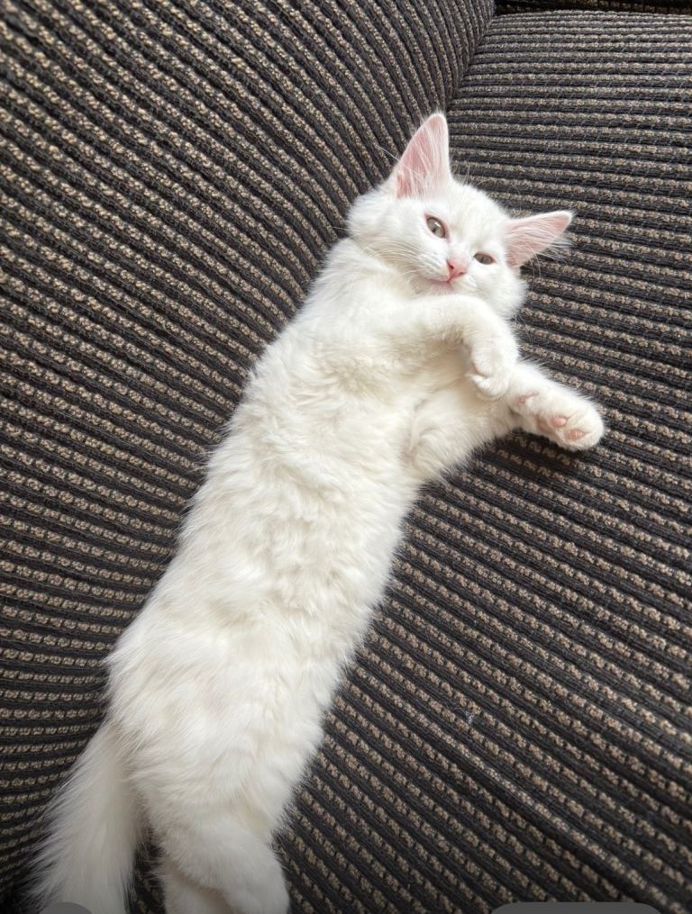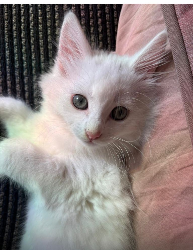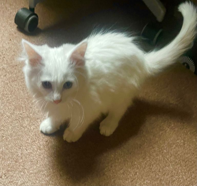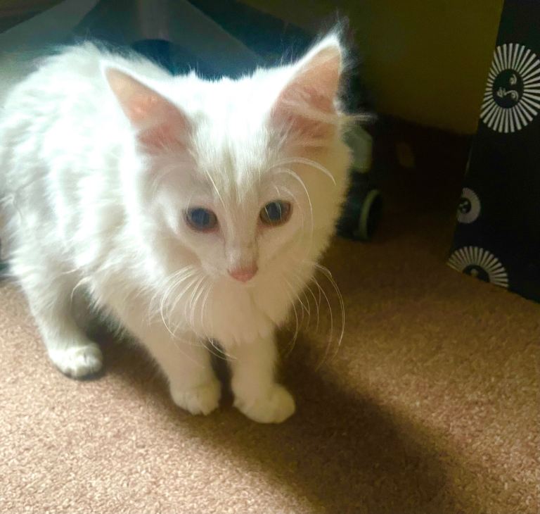 White fluffy kitten 11weeks ,female,Turkish Angora very playful,litter trained.