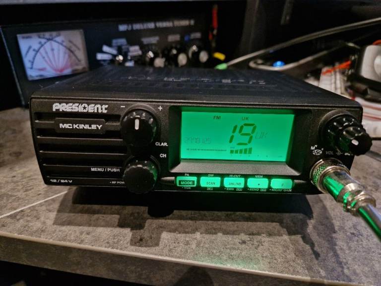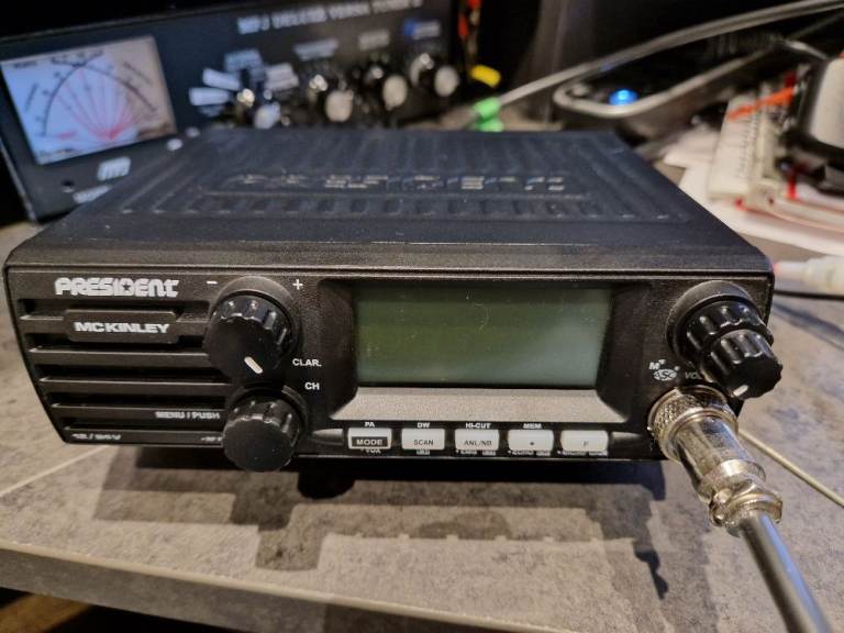 President McKinley 24 - 30Mhz all mode CB radio. Button presses allow UK mode or wideband mode. Boxed like new and still sealed from when it was bought. Boxed complete.