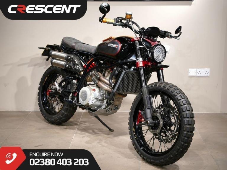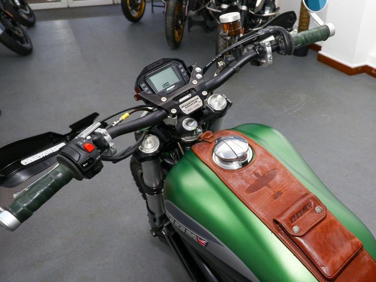 2022, '72 reg. CCM Maverick. One owner and JUST 247 MILES from new. This stunning bike is number 86 of a limited edition and is complete with tank bag, bar end mirrors, handguards, headlamp guard, black Excel rims and much more. Looks, sounds and rides superb. Beautifully looked after and great value at £8,495.