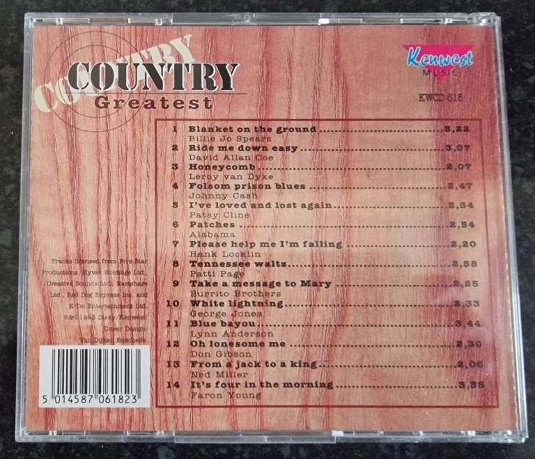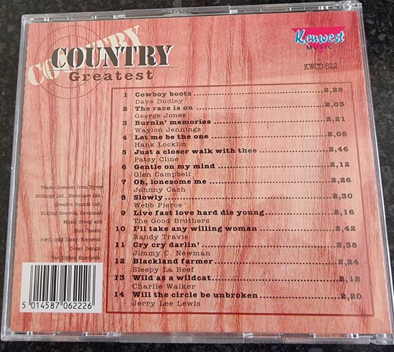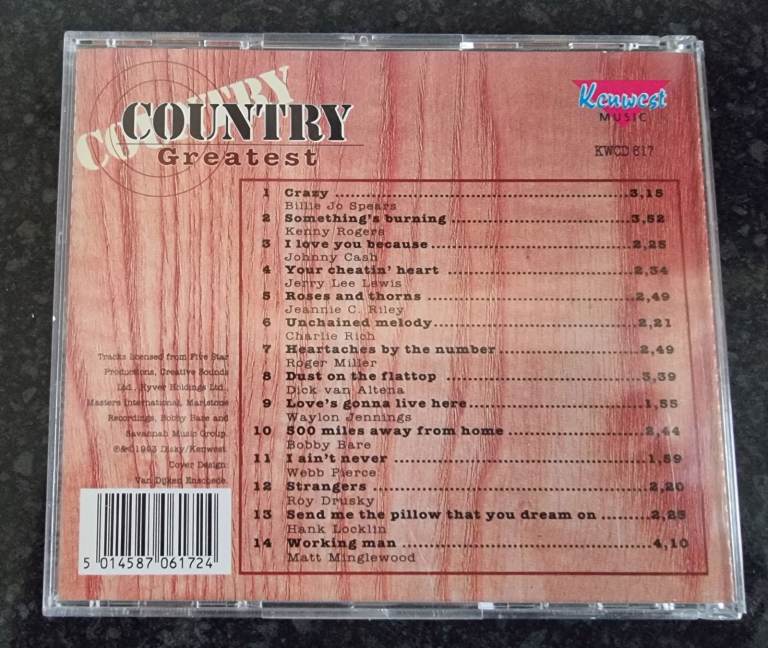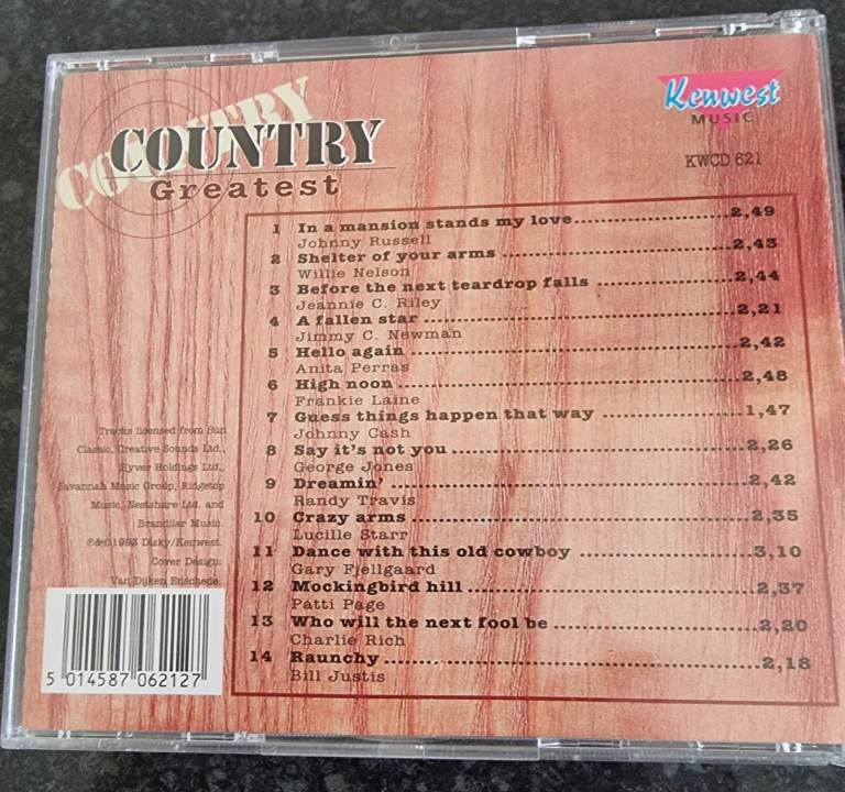 Released in 1993 by Kenwest Music, this collection comes in a wooden box, adding a unique and nostalgic touch to the jewel cases and inlays. With a very good plus grading, this box set offers a comprehensive selection of country music for fans and collectors alike.