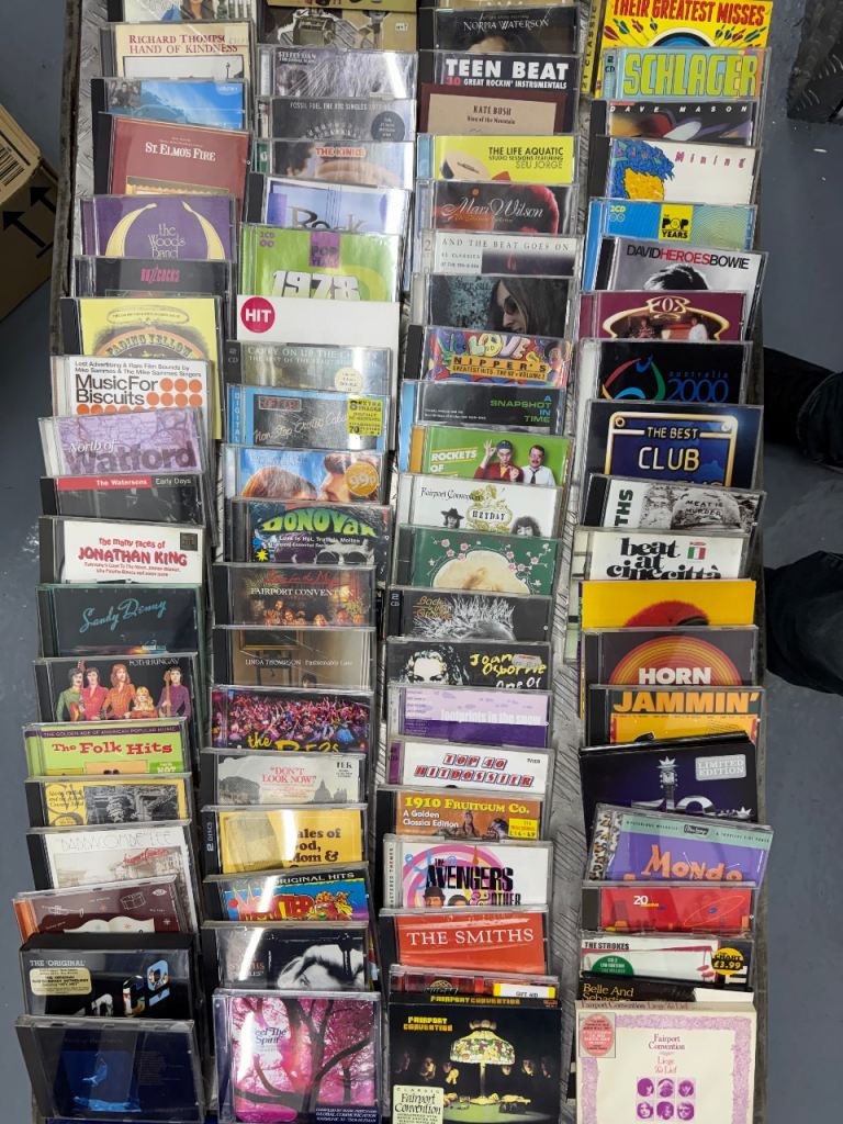 Around 100 cds, various genres, various countries, some compilations, some film soundtracks. Artists include Judee Sill, Fairport Convention, Richard Thompson, The Smiths, Sandy Denny, Bad Company, Mari Wilson, Norma Waterson, The Woods Band, Soft Cell, Donovan, Fox, the Beautiful South and more. Folk, rock, pop, punk, easy listening, etc.