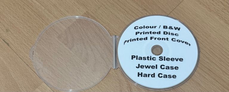 - Jewel case and Plastic sleeve have a printed front, inner and disc