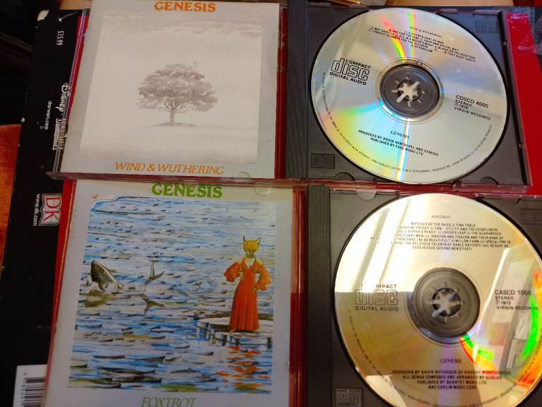 FOXTROT STATES MADE IN JAPAN, THE OTHER PRESUMABLY IS ALSO ,BOOKLETS WITH LYRICS,JUST A FEW TINY HAIRLINES ON FOXTROT BUT BOTH NEWISH LOOK,,THE CASES HAVE SOME WEAR,BOOKLETS ARE FINE