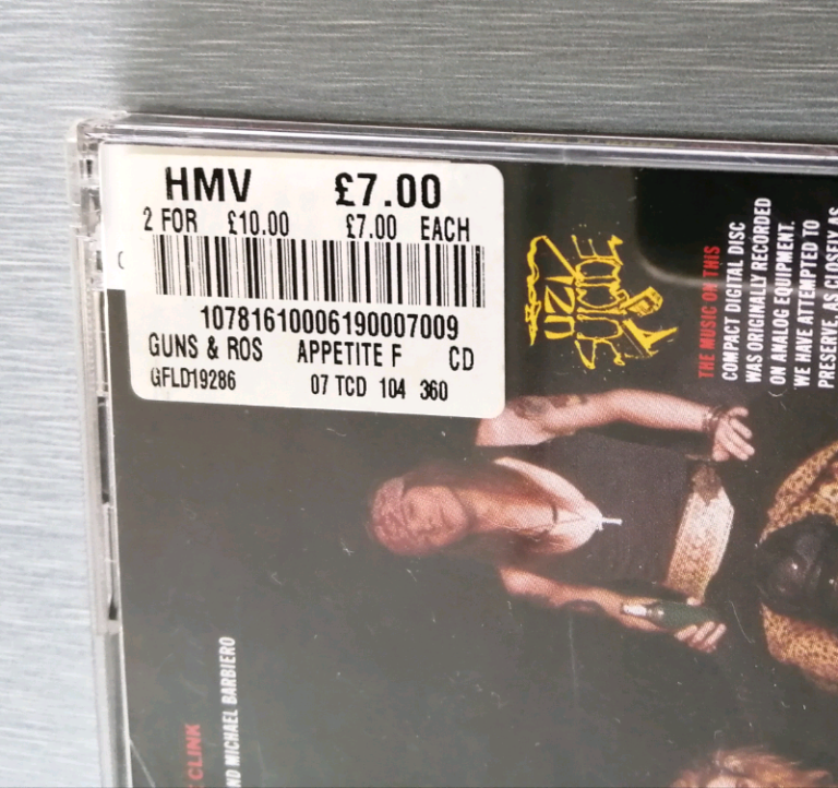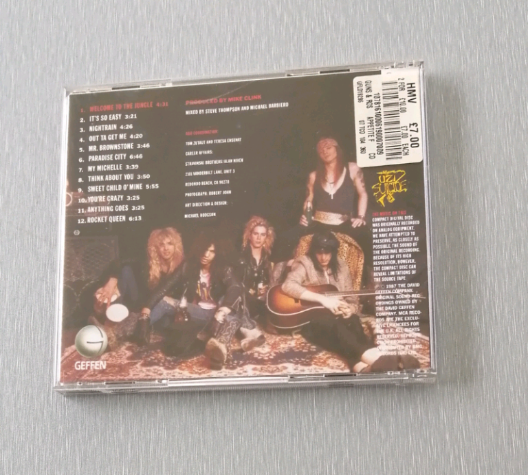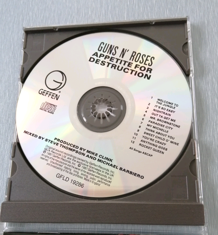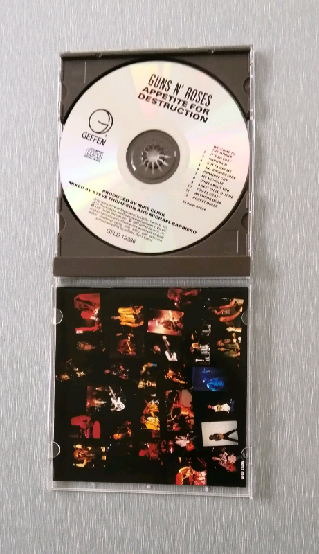 A single disc album from Guns N' Roses released by Geffen in1987. Guns N' Roses are an American Hard Rock/Heavy Metal band of the 80's, they have produced some good music. Tracks on the album include It's so Easy, Rocket Queen and others, see photos for details. This copy was purchased from HMV in Chester in the 2000's and the price ticket is still on. It has been played twice, one when purchased and again on Sunday 19th November 2023 to check its condition. Overall condition is good, there are no marks on the disc it plays no problem, the inlay is good as is the standard jewel case. As with all plastic cd cases there is some handling wear and tear. The reason for selling is because I am downsizing my cd collection. Postable/collectable. I will combine with other items I am selling.