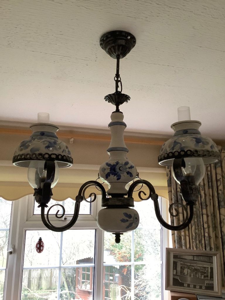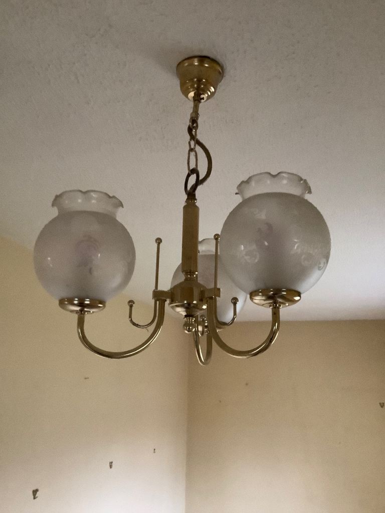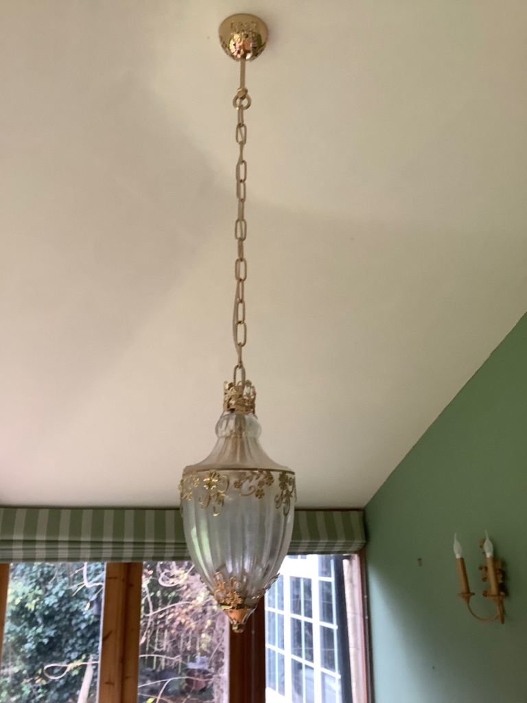 12 Light Ribbed Glass Pendant Ceiling Light, Brass/Amber NEW/Boxed RRP £600