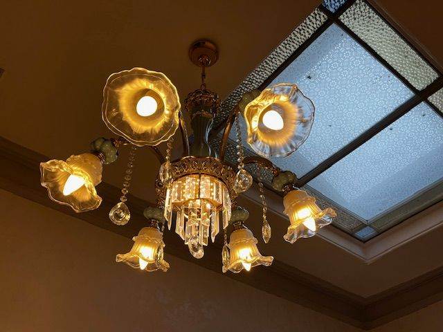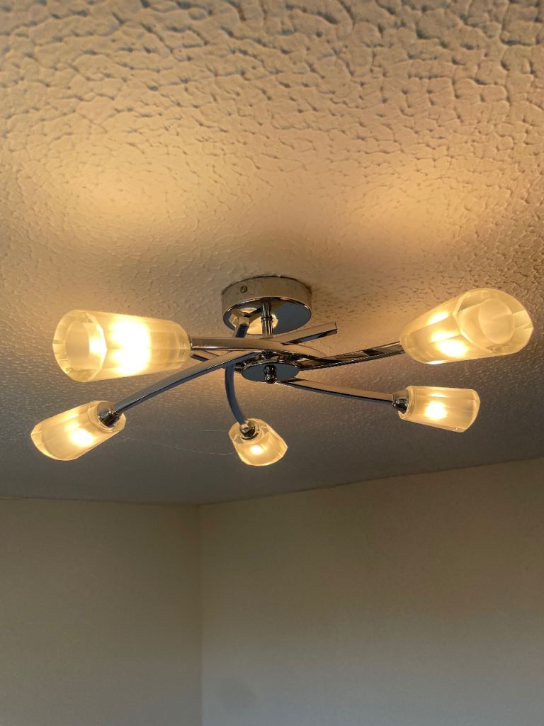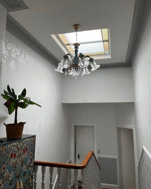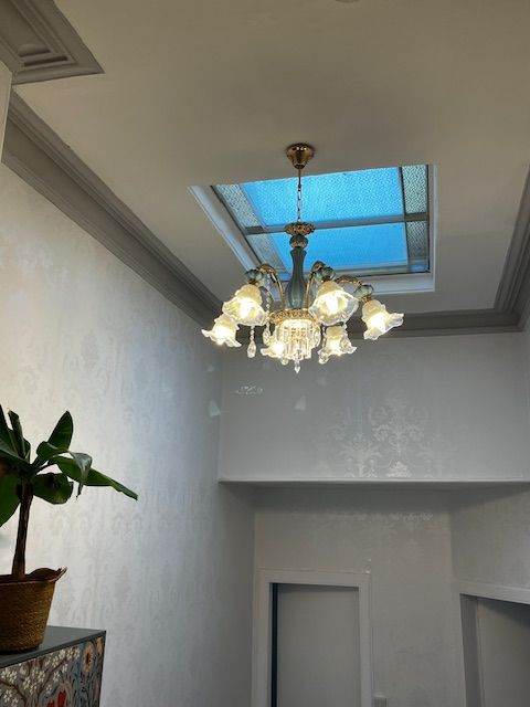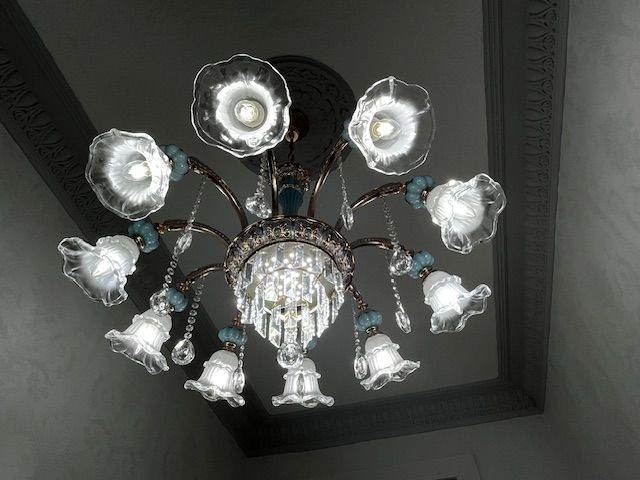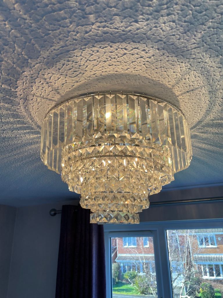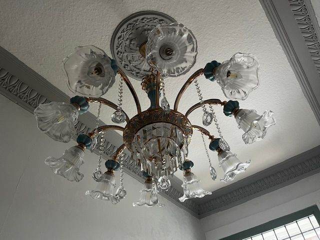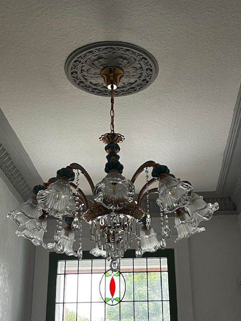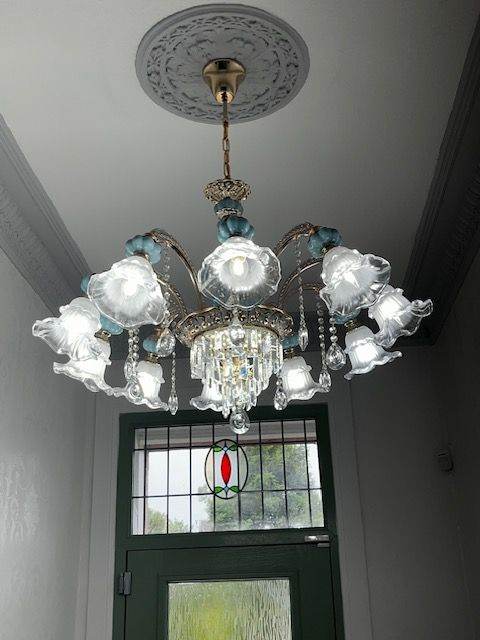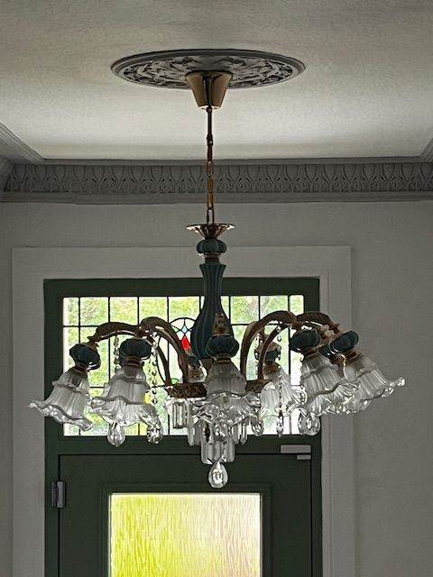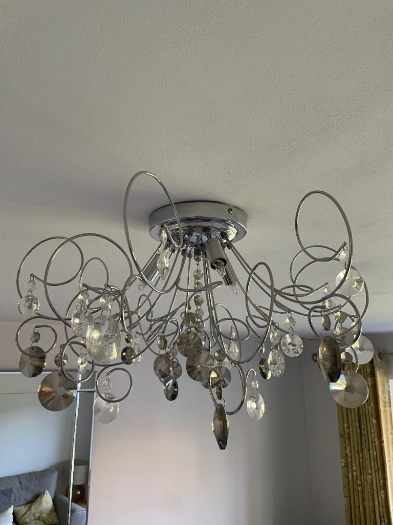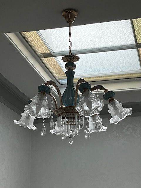 Posting for under a month2 x chandeliers, one larger, genine crystal and blue/turquoise porcelain