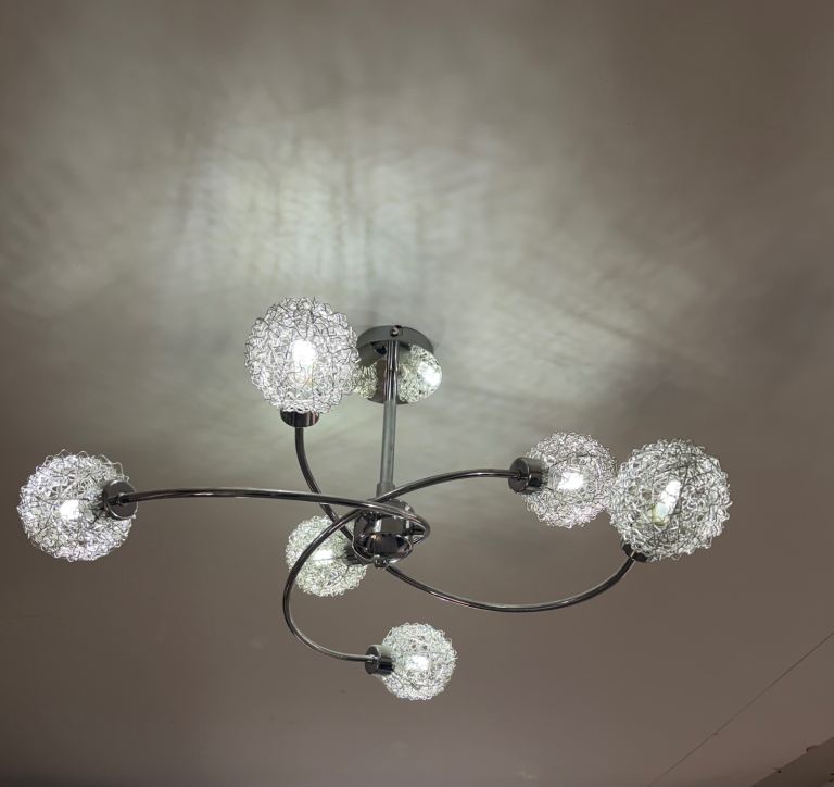2 x ceiling light, chrome finish with 7 dandelion-style mesh shades.