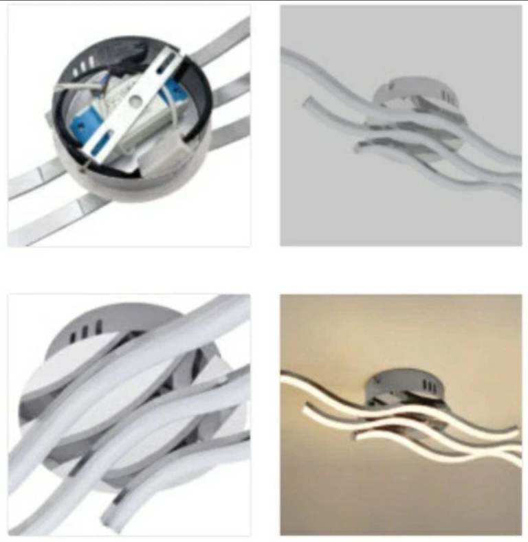 - 3 metal wave-shaped elements have been attached to the round ceiling base creating an eye catching look