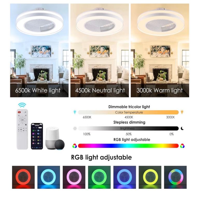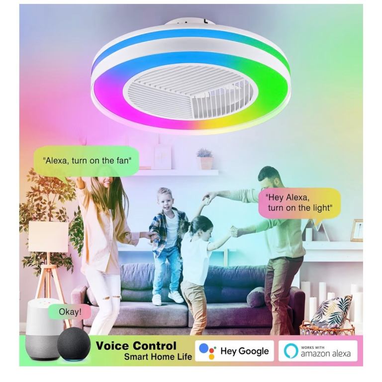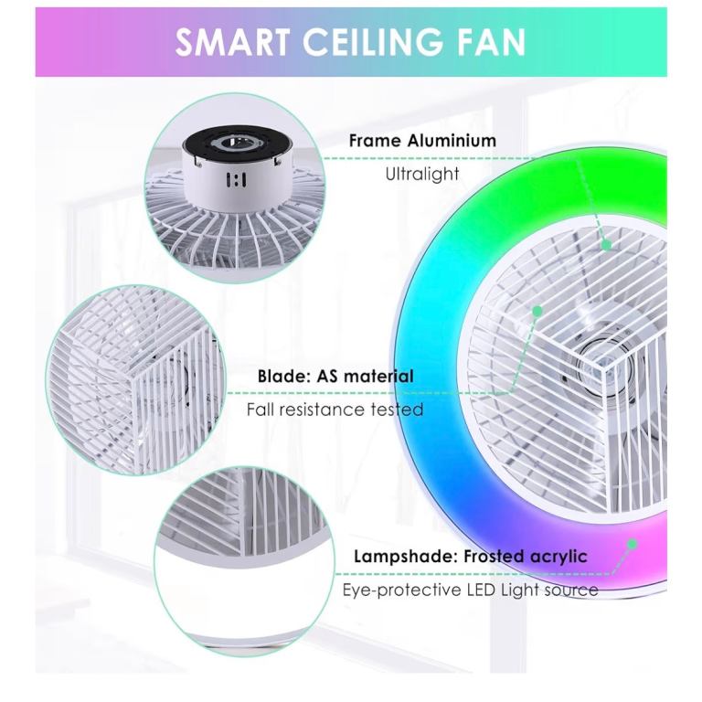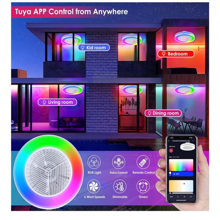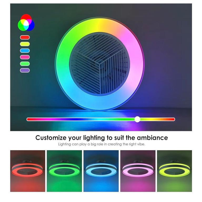 * 【RGB Ceiling Fan】Experience a whole new level of interior design with this enclosed ceiling fan that featureso RGB lights. Create a dynamic and modern atmosphere with a variety of colors that will impress your guests. From monochrome mode to cyclic lighting mode, enjoy party, disco, and stage lighting right in your own home. With the convenient APP application, personalize your light color and scenario to music rhythm. This is a revolutionary way to enjoy your living space!