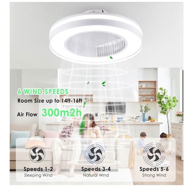 * 【Customizable Fan Settings】This innovative enclosed ceiling fan has a reverse function and sleep mode, which creates downward or upward airflow to keep you comfortable year-round. You can also adjust the fan speed with the remote control for powerful but quiet circulation. And, when you turn off the fan with lights, it will remember the last color temperature and brightness setting for ultimate convenience.