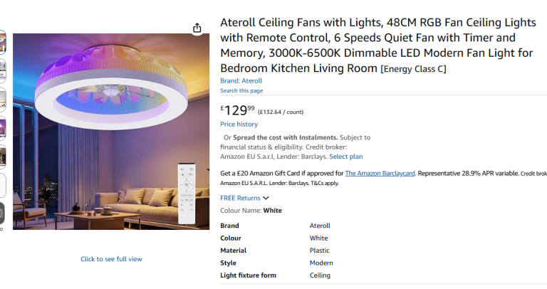 Bargain! New Smart White Ceiling Fan with RGB LED Light, App & Voice Control Alexa etc. RRP £200