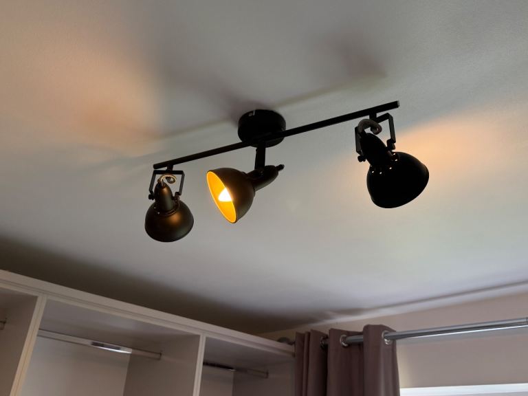 Black Ceiling Spotlights Bar with Three Lights – Good Condition