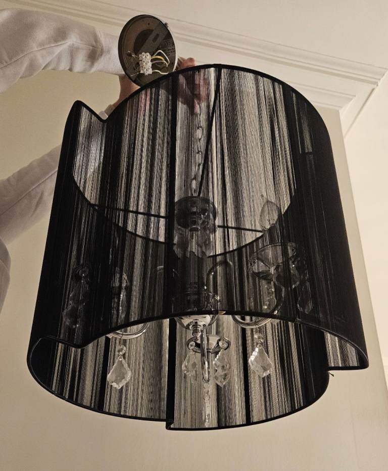 Black & Silver 3 Arm Chandelier Ceiling Pendant / Light