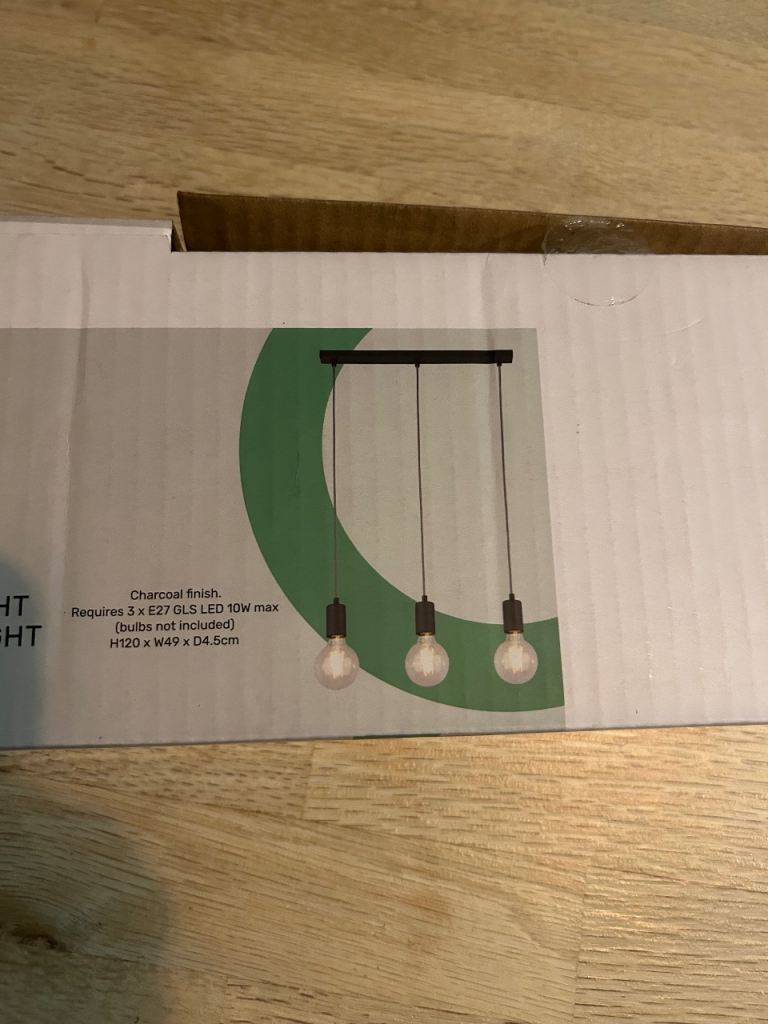 Jay 3 light ceiling light never been used from Homebase. Charcoal metal with charcoal coloured rope - £15 REDUCED PRICE