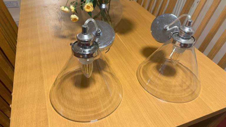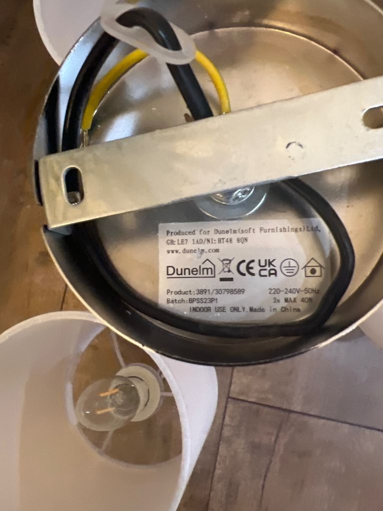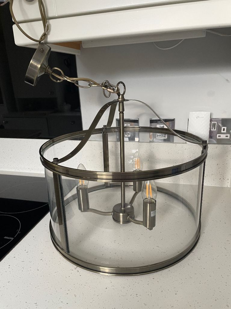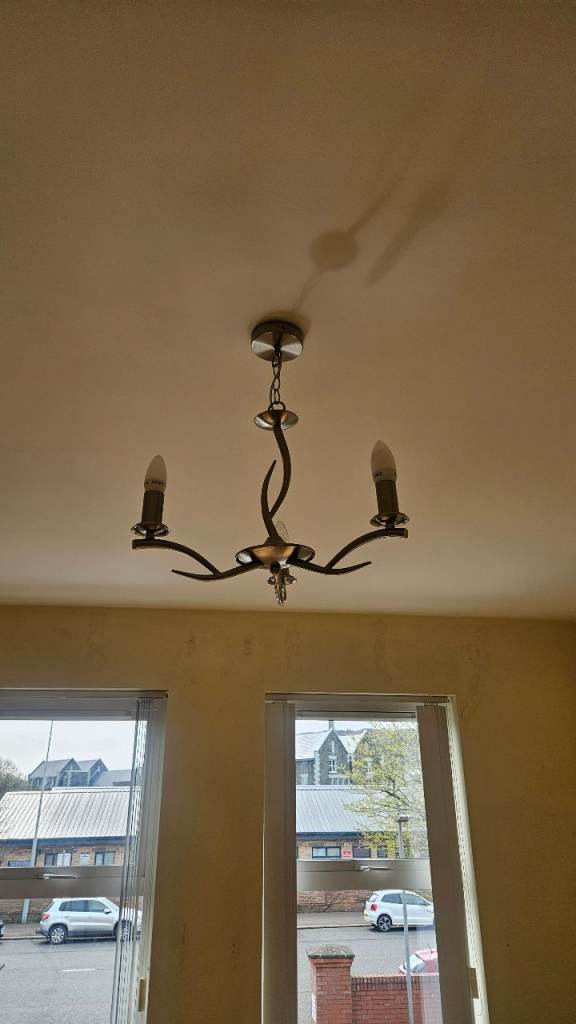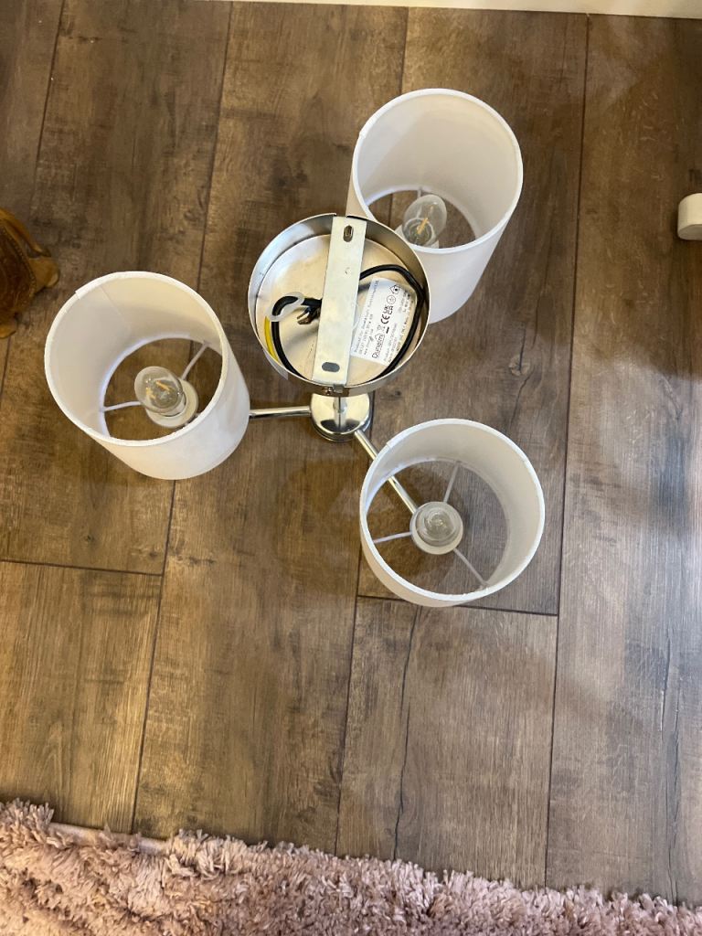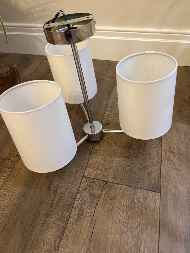 Brand new centre ceiling light with 3 shades and light bulbs included chrome body