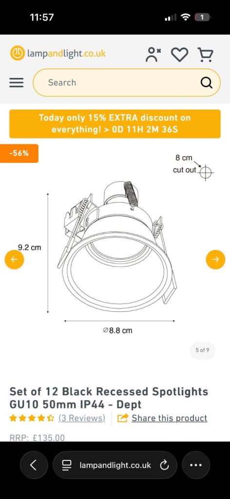 BRAND NEW SEALED BOXED, Matt Black Recessed Spotlights GU10 50mm IP44 42 AVAILABLE £6 EACH