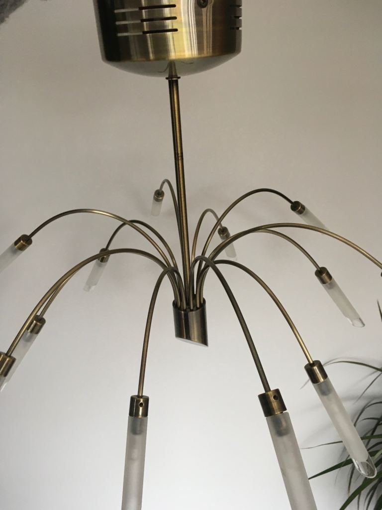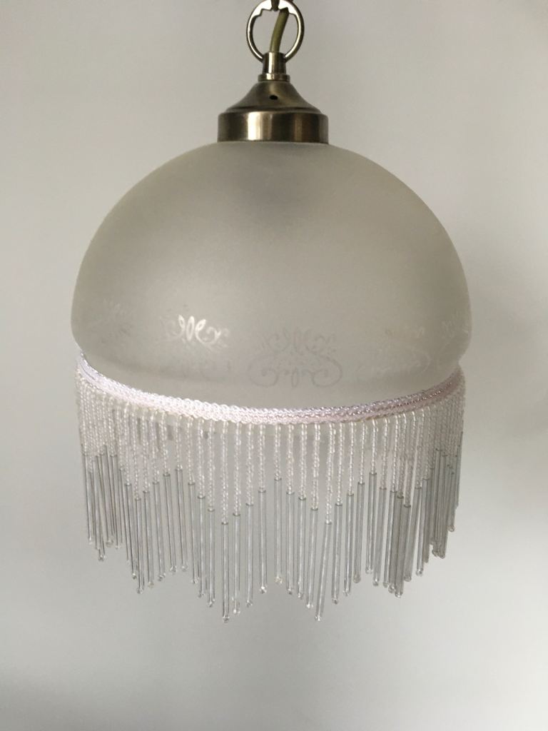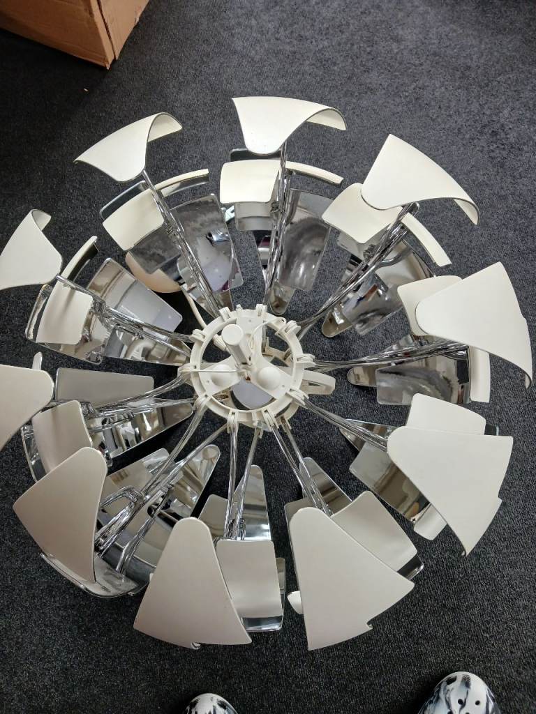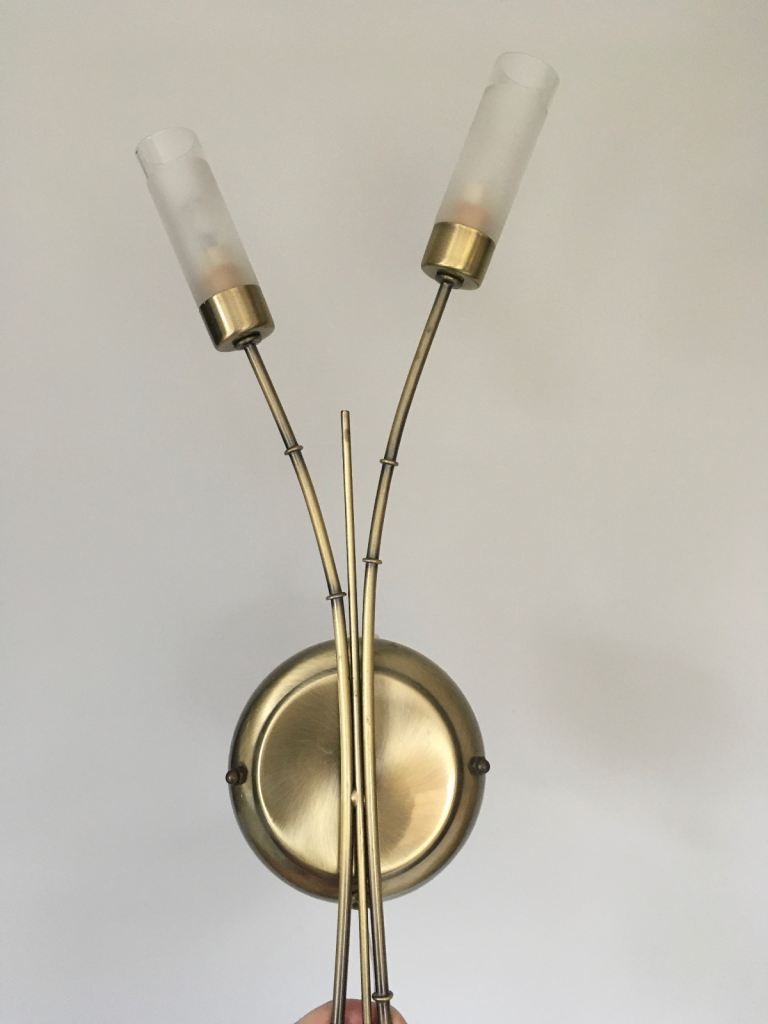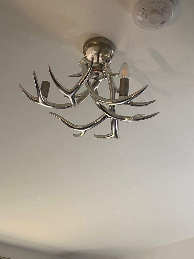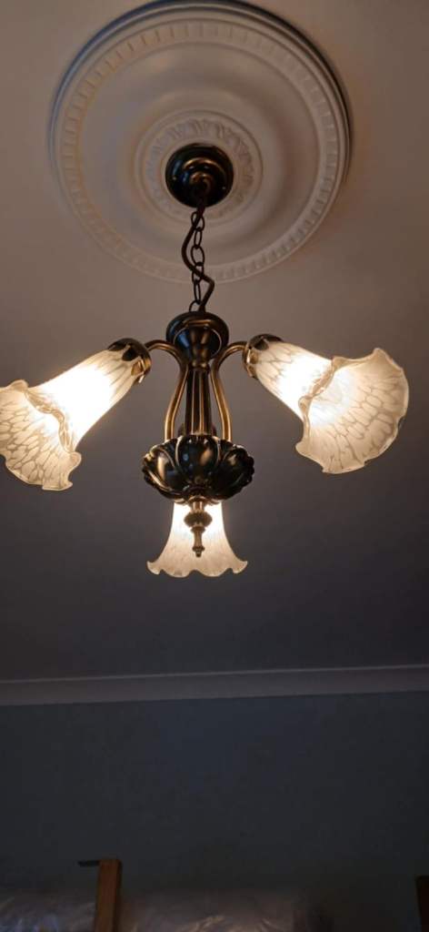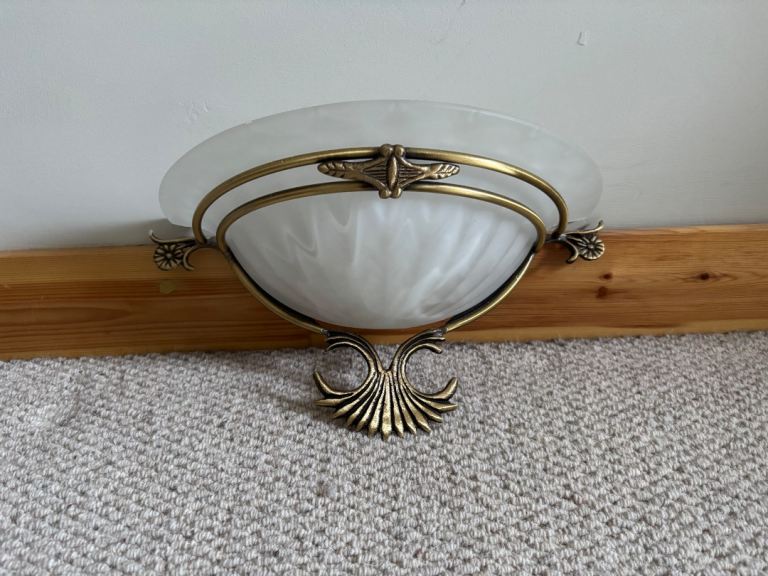 Matching glass and metal ceiling light fitting and two wall lights. About two years old. Good condition. Smoke free, pet free household.