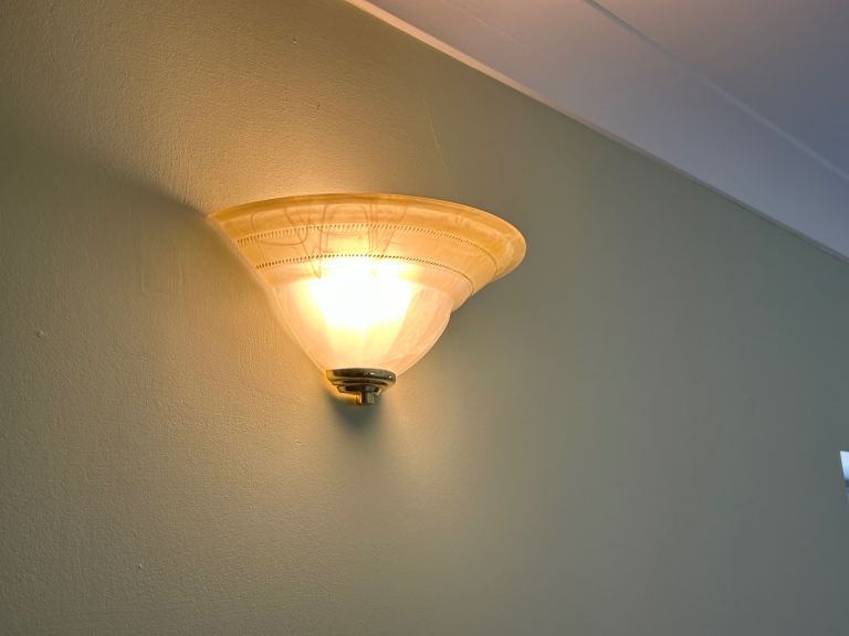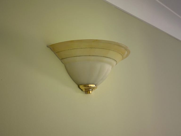 Set of 4 glass ceiling lights together with 2 matching wall lights. Art deco glass style shades.