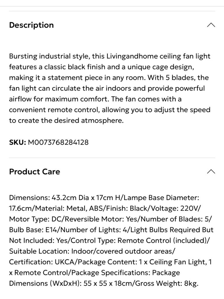 Black Cage Celing Fan Light as advertised at Debenhams but now not available.