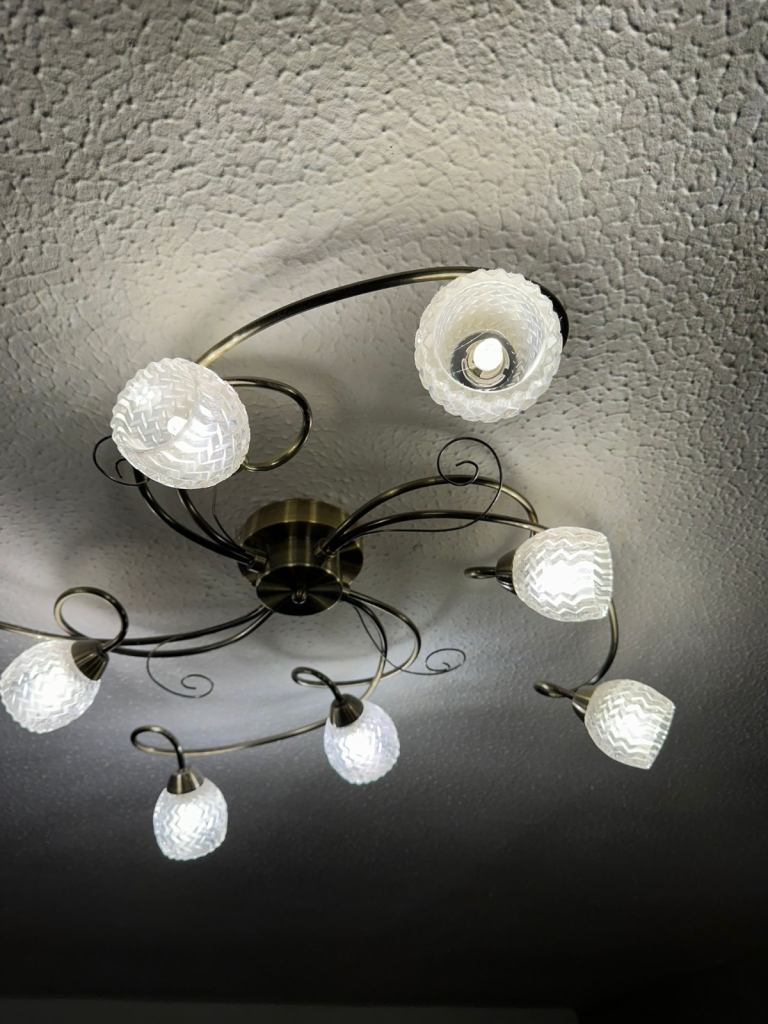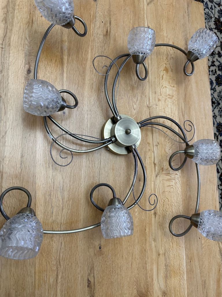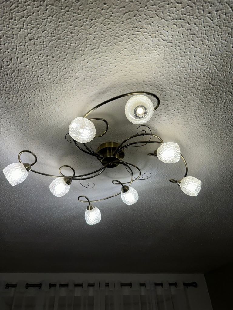 Flush light fitting with 8 lights & including working LED light bulbs, very nice light fittings, LARGE SIZE 60X60cm approximately,changing due to new home decor, pick up from EH9 3AJ