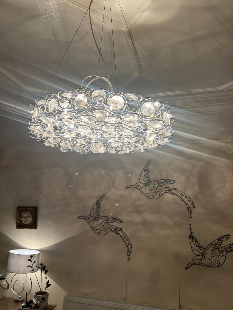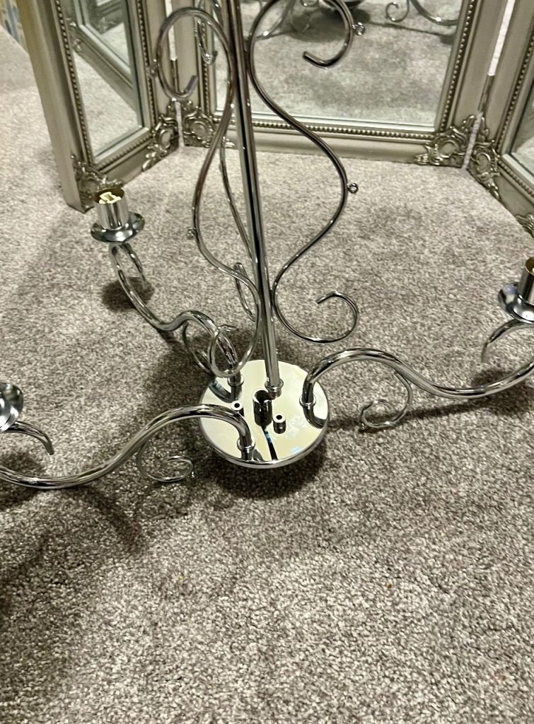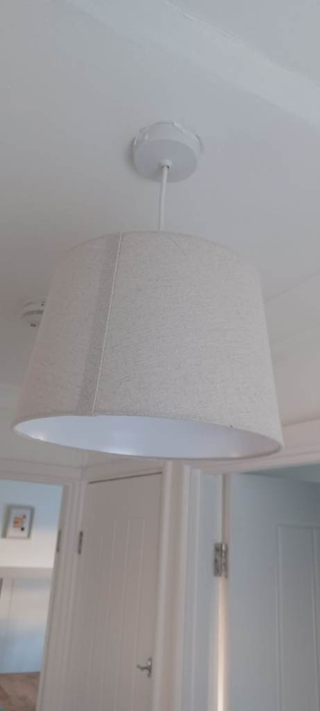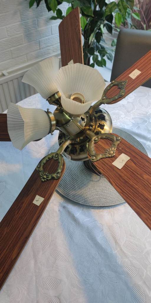 A ceiling light fitting fan with three lights and four blades. beautiful in the summer months. Lights can be used without the fan