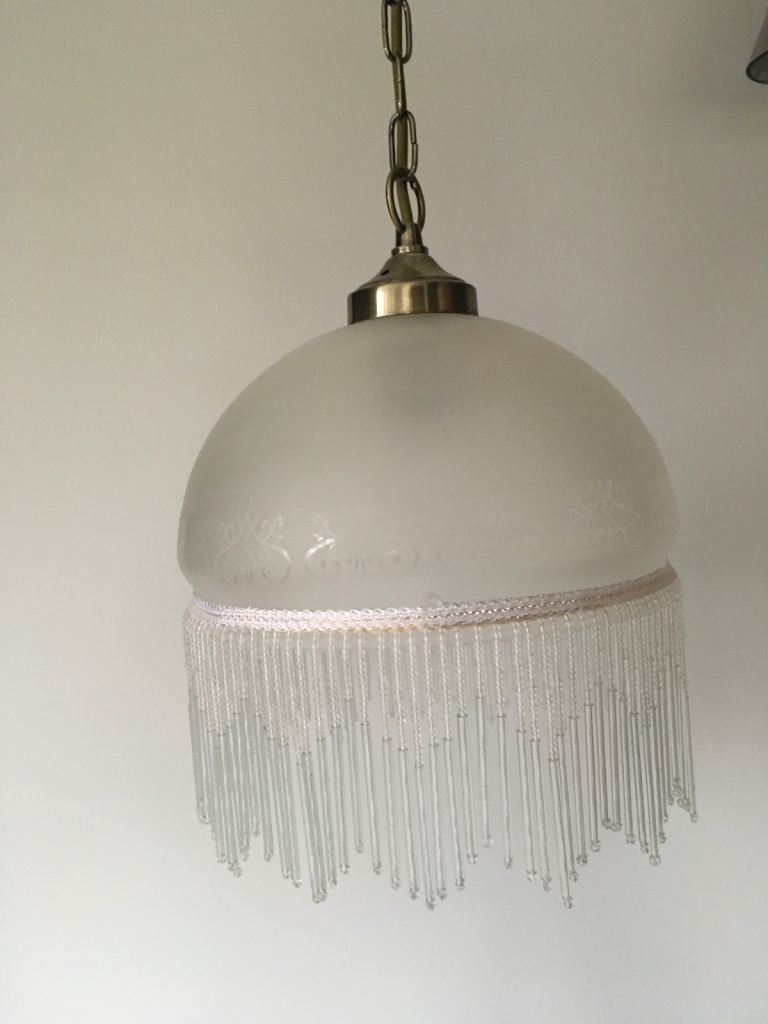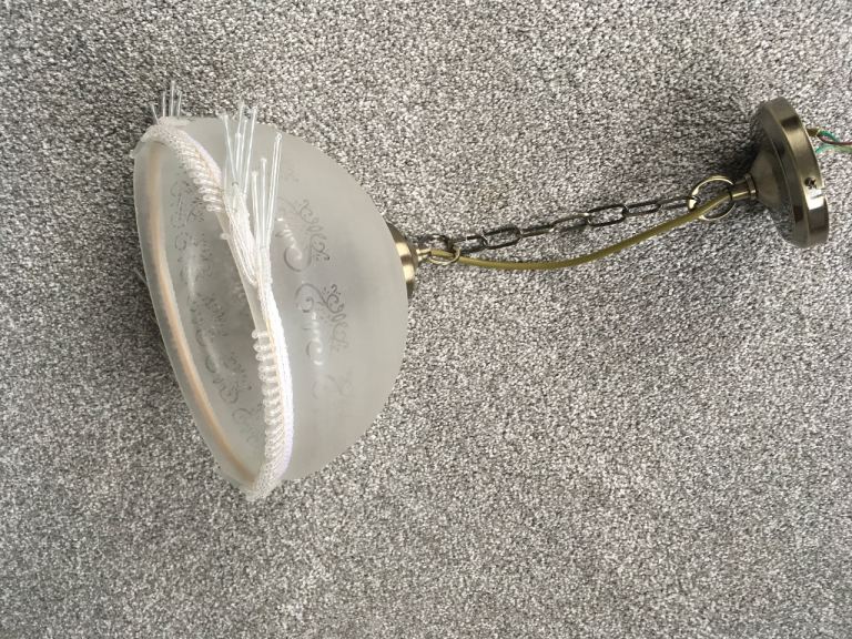 Pretty glass ceiling light. About 18 months old. Good condition. Needs bulb. Smoke free, pet free household.