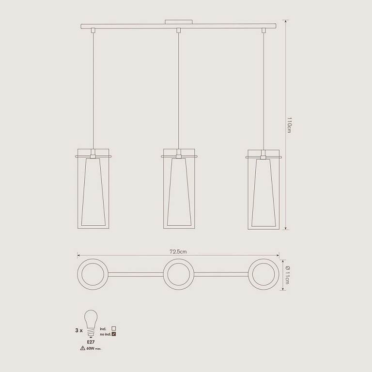 Perfect addition in a kitchen, suspended over a dining table or kitchen bar