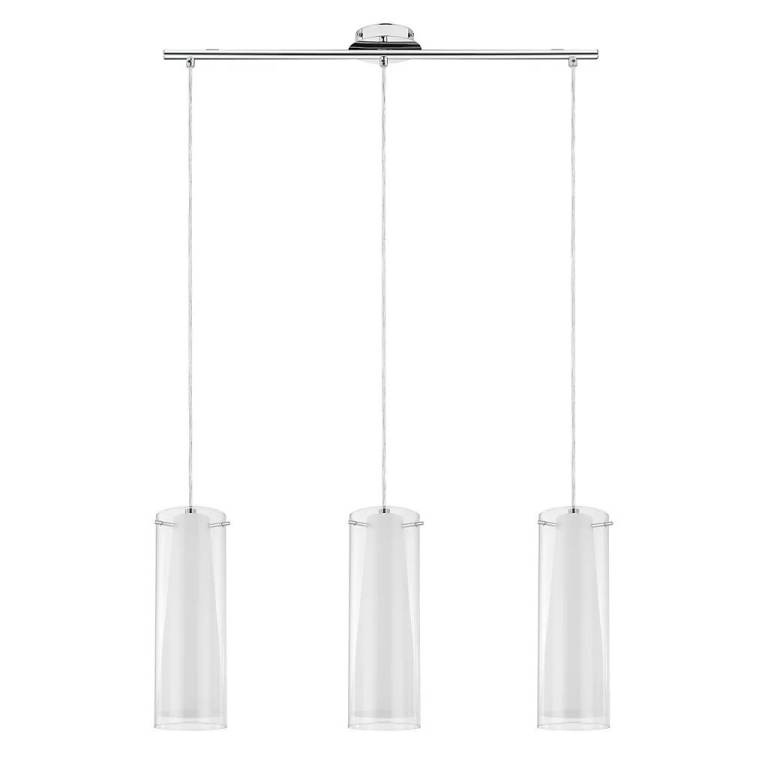 Pendant Ceiling Light 3 Way White Chrome Effect Glass Shades