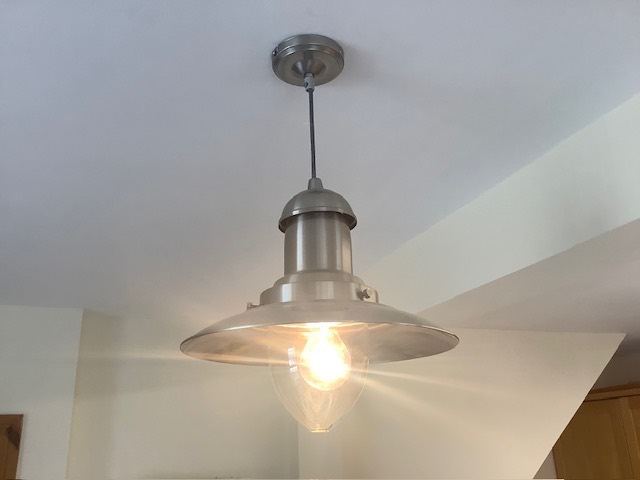 Ceiling light. Glass shade, metal construction. One of a pair now surplus to requirements. Ideal for kitchen /diner. Now boxed with all fittings. Buyer collect.