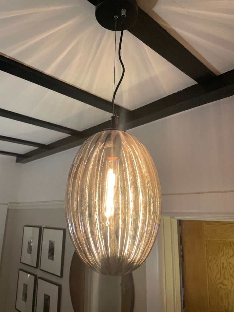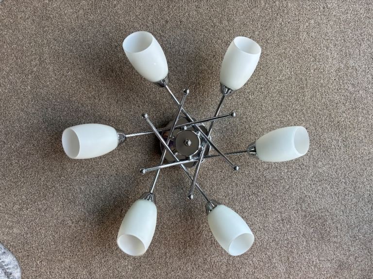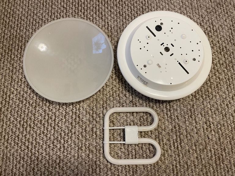 Comes with a spare bulb and 2 shades, frosted and gloss.