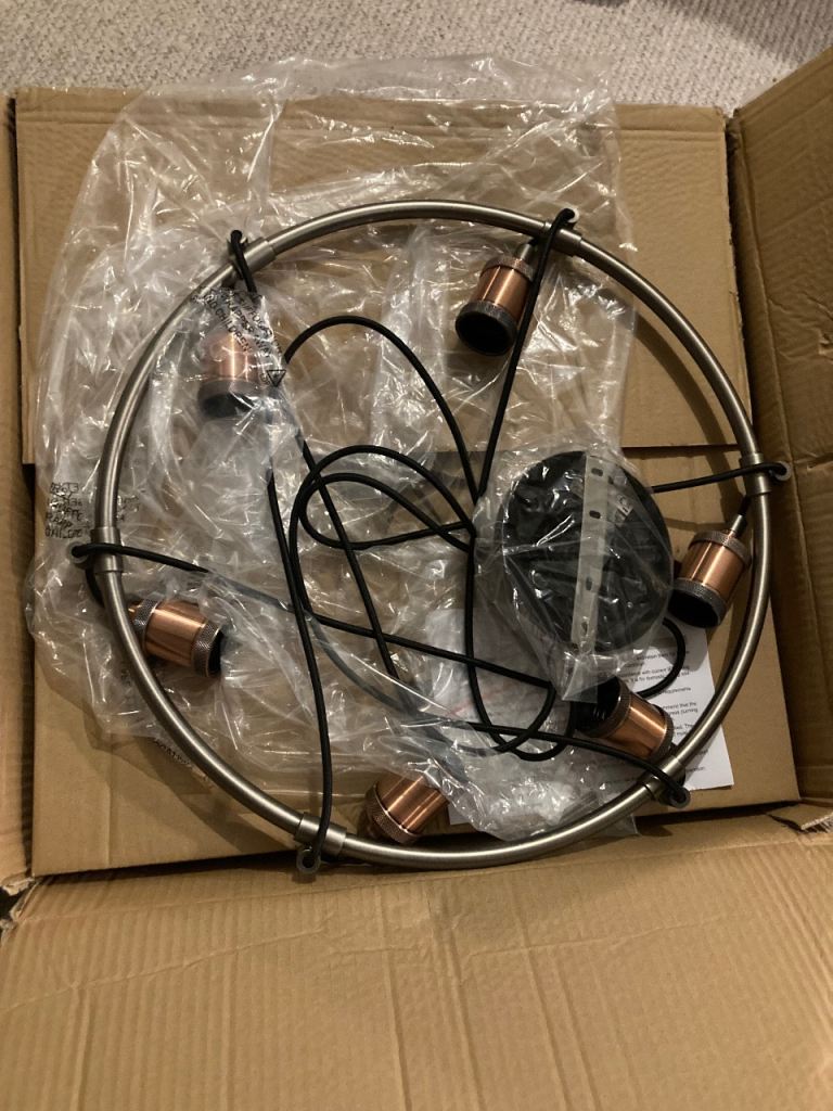 Brand new ceiling light still in its original packaging, never been used. Bought for £90 from Wayfair, design by Trent Austin. A change of scheme meant we didn’t use it and it’s been sat in its box since.