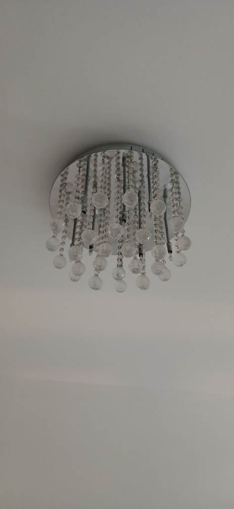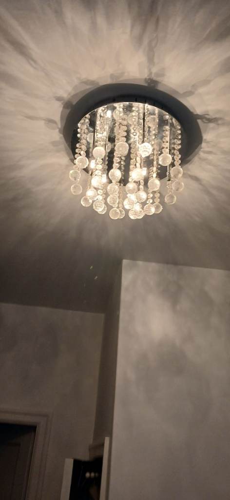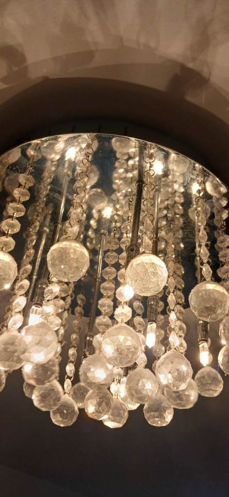 Lovely chrome/glass chandelier. Purchased from BHS - in full working order (still using at the minute).