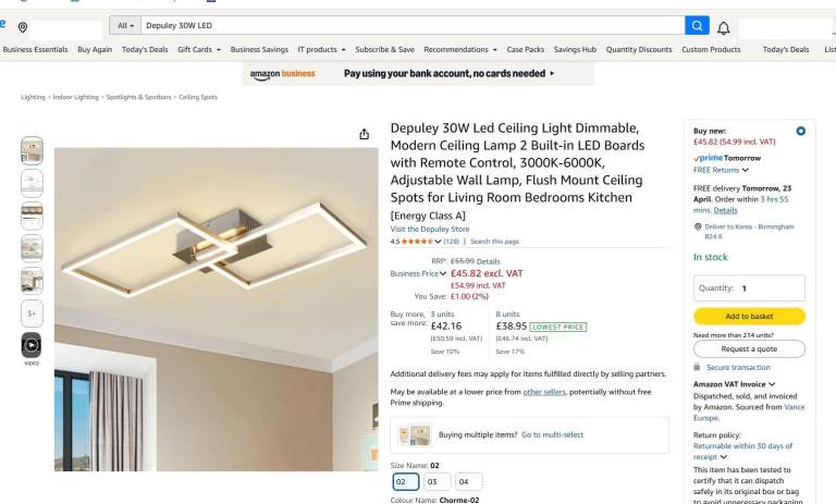 Search for "Depuley 30W LED" on Amazon for full details. Size Name: 02. Current price 54.99 incl. VAT.