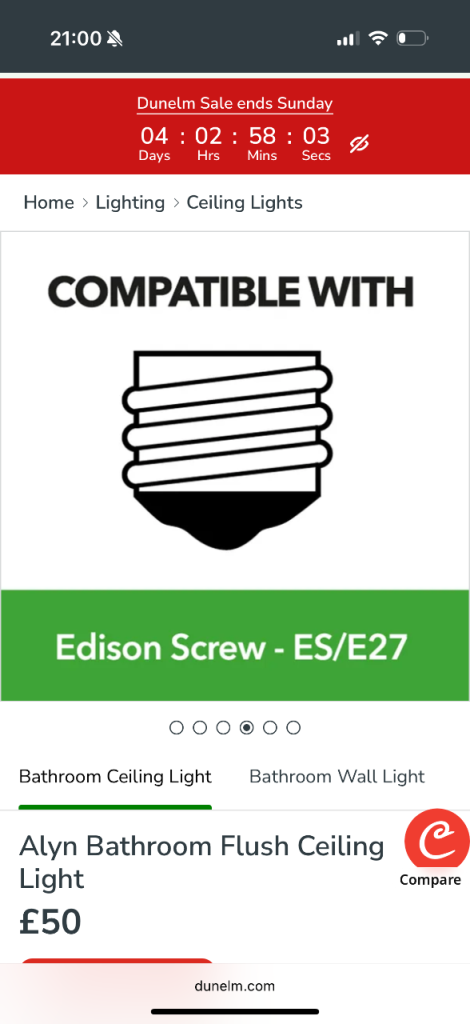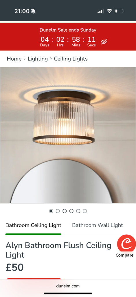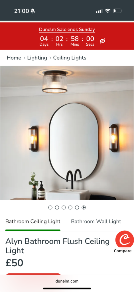Posting for under a monthDunelm - Alyn Bathroom Flush Ceiling Light