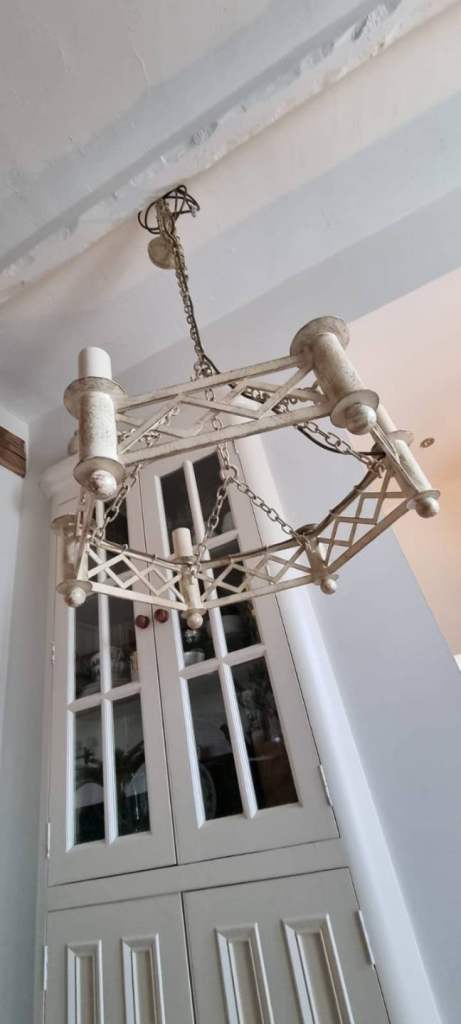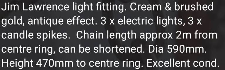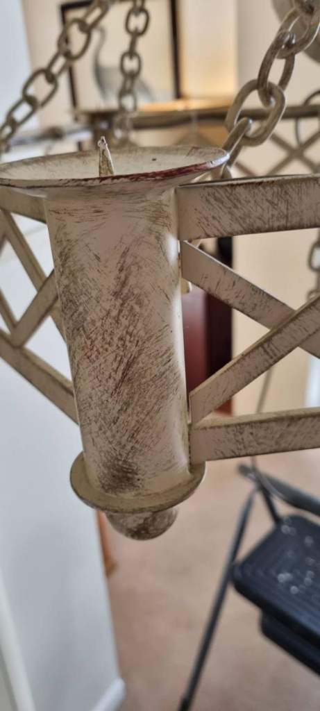 Posting for 10+ monthsJim Lawrence Chandelier 3x Electirc Lights & 3x Candle Spikes Brushed Cream&Gold