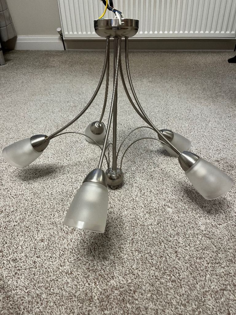 In good working order- selling as just changed lights. Featuring a metal frame and five glass shades.