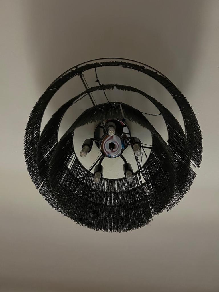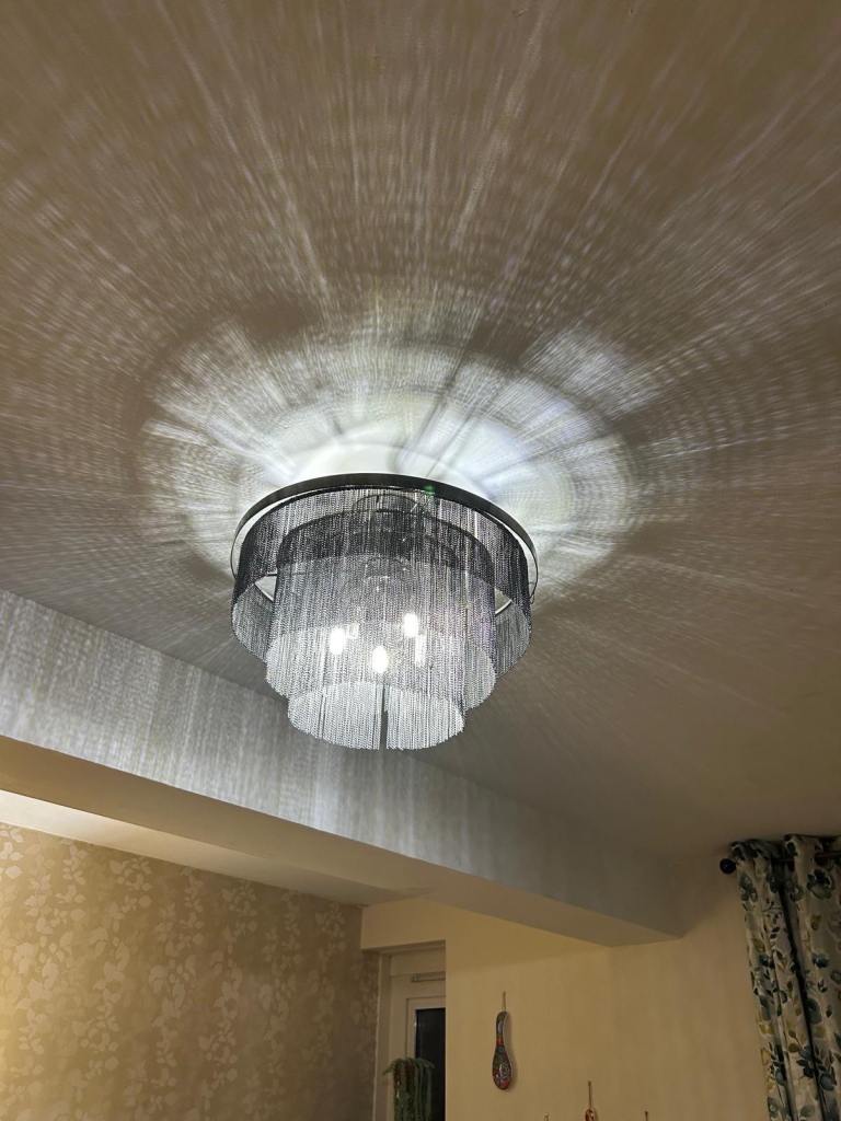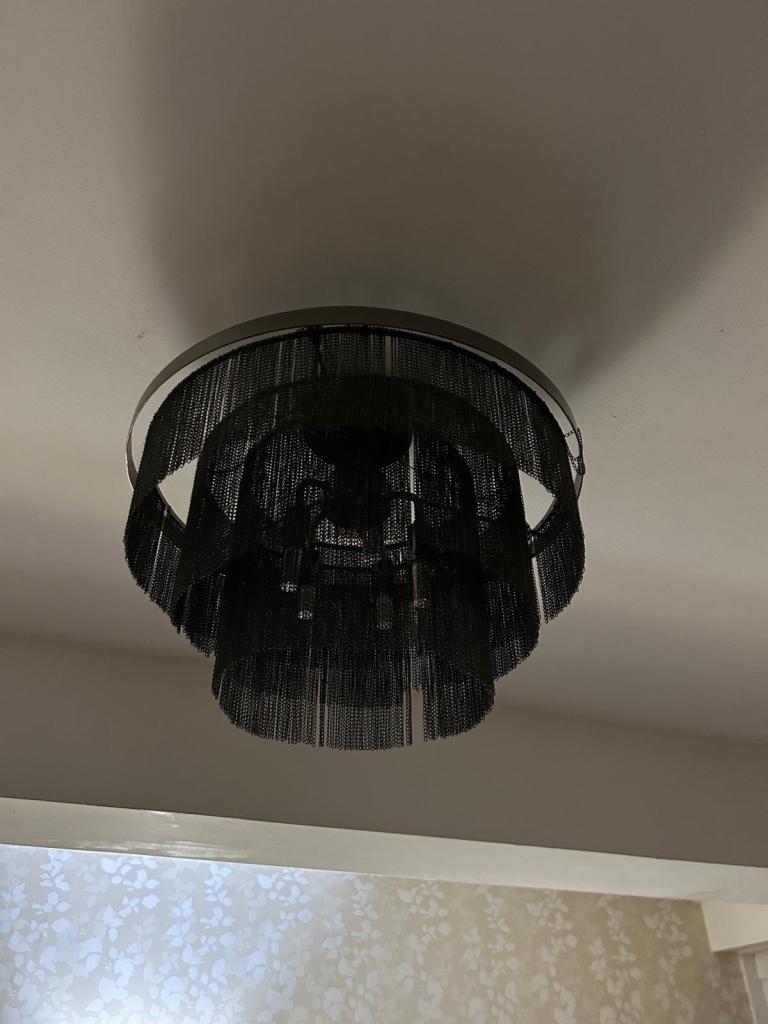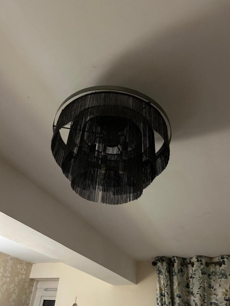 Hi it’s fully working black made dot com chandelier for sale. Pick up from Bethnal Green.