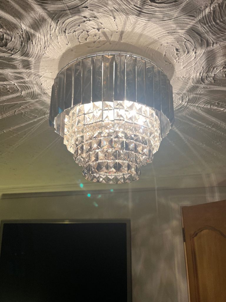 Posting for 14+ yearsNext home- Chrome/silver glass, flush fitting chandelier