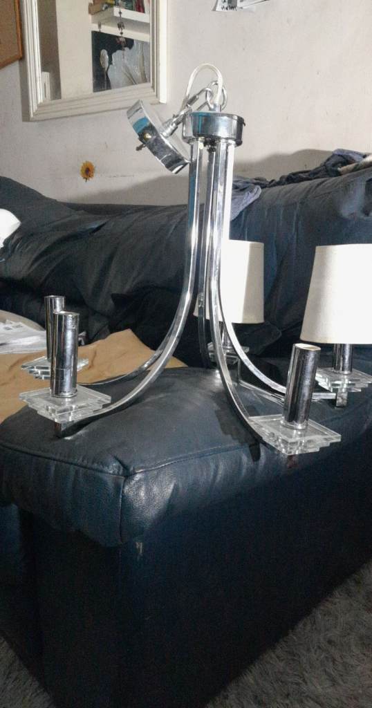 2 x deathstar lights and a nice Laura Ashley chrome 5 arm chandelier c/w shades going cheap can also fit them if needed thanks Andy