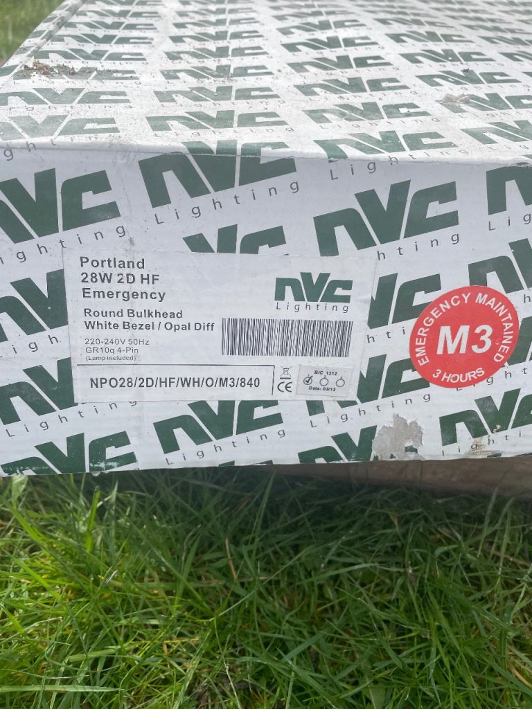 Brand new NVC Portland 28W Round Bulkhead light with a white bezel and opal diffuser.