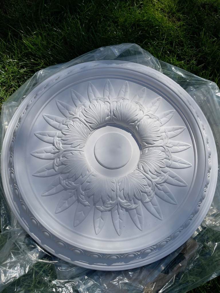 Plaster ceiling rose. Never used. 55.5cm across. Traditional design. Has been in storage. Cost £85 new 5 years ago.
