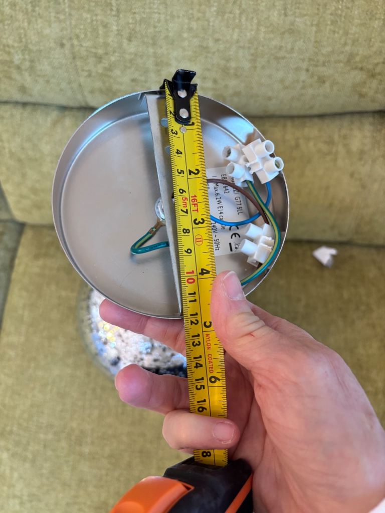 Chrome ceiling rose (12cms dia) cord is 10cms long