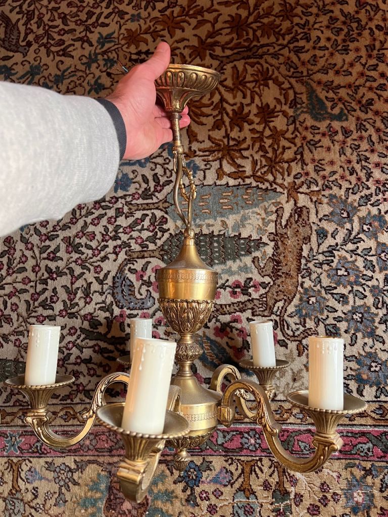 Vintage Rococo style chandelier with 5 lights with ceiling rose ready to attach to new ceiling.
