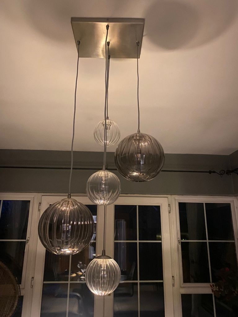 Posting for 13+ yearsStylish 5-Globe Glass Ceiling Chandelier – Good Condition