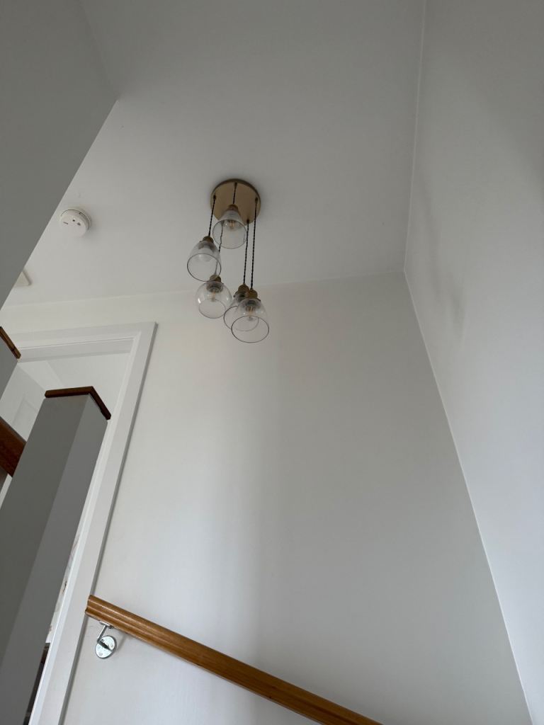 It's in good condition and provides a nice warm light for a hallway or living space.